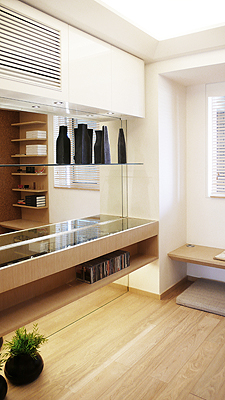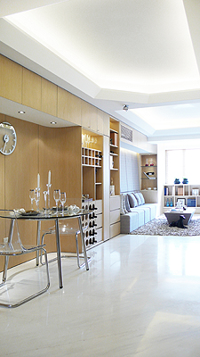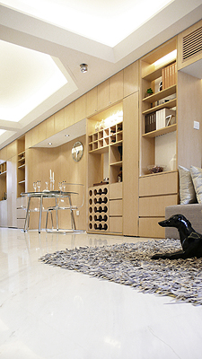 泓鑒裝飾設(shè)計這樣的室內(nèi)設(shè)計概念能夠?qū)⒃玖闵⒌墓δ懿考铣梢粋較統(tǒng)一的形體,讓空間氛圍顯得更加整體,擴大視覺感并讓戶型更加有特點。與功能墻向?qū)Φ牧硪幻鎵w則更偏向展示功能。為各個房間所設(shè)計的展架及矮柜能夠讓用戶隨意擺設(shè)各類型的搜藏品及展示品,并讓戶型空間成為體現(xiàn)住戶個性及品味的宅體。